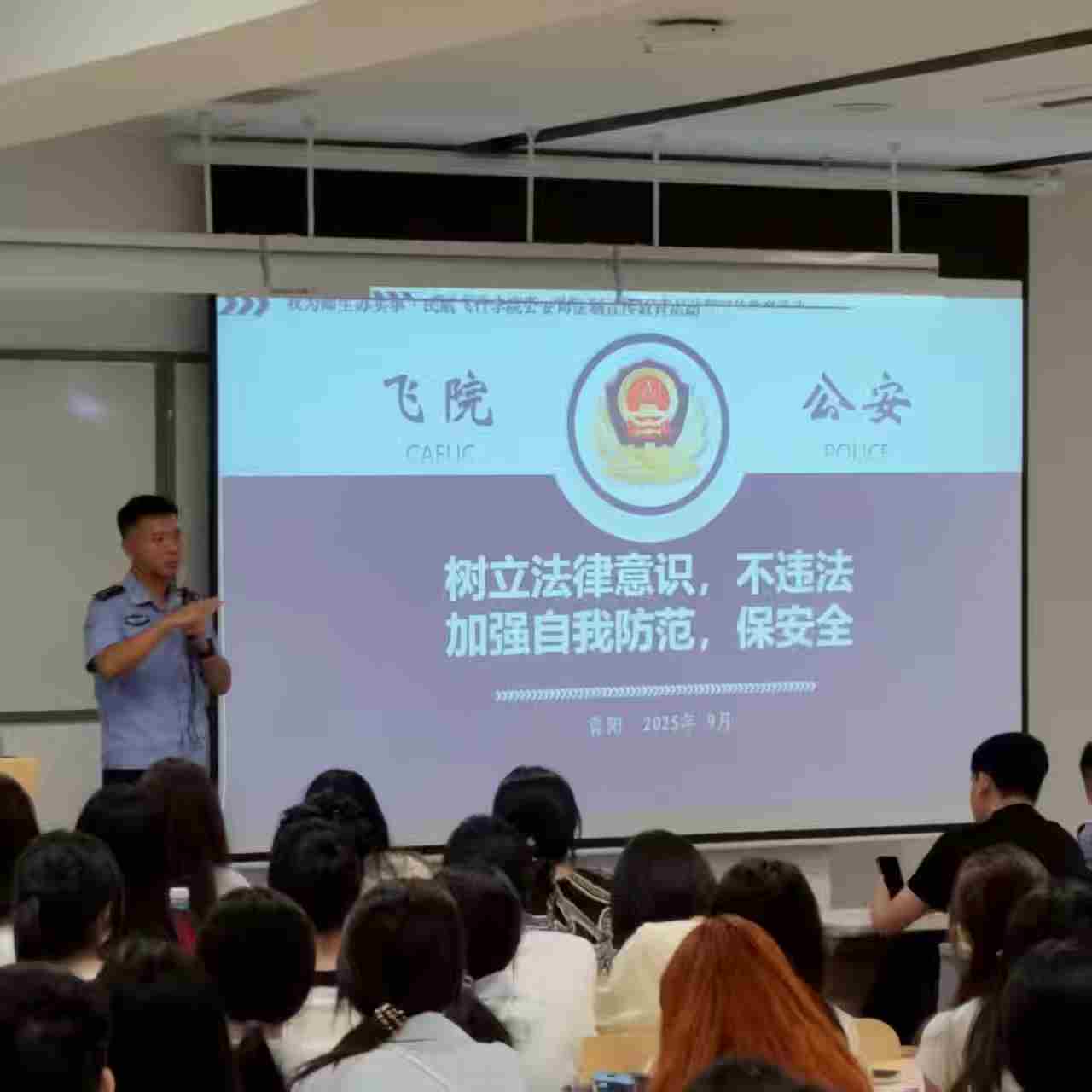 本网讯 宝盈bbin直营平台报道:为增强2025级新生法治观念与安全意识,引导其扣好大学生活“第一粒扣子”,平稳适应大学生活环境,扶摇书院·宝盈bbin直营平台一站式社区于9月5日邀请学校公安局一级警长曾阳为2025级新生开展法治与安全教育入学讲座。讲座围绕“树立安全意识,不违法”与“加强自我防范,保安全”两方面展开。